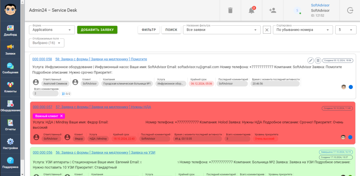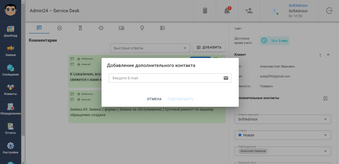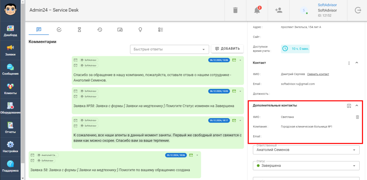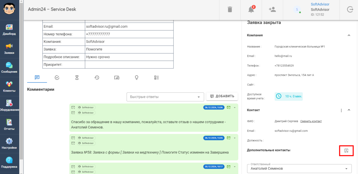 Прикрепление дополнительных контактов, изменение системы оценки заявок и другие обновления Admin24