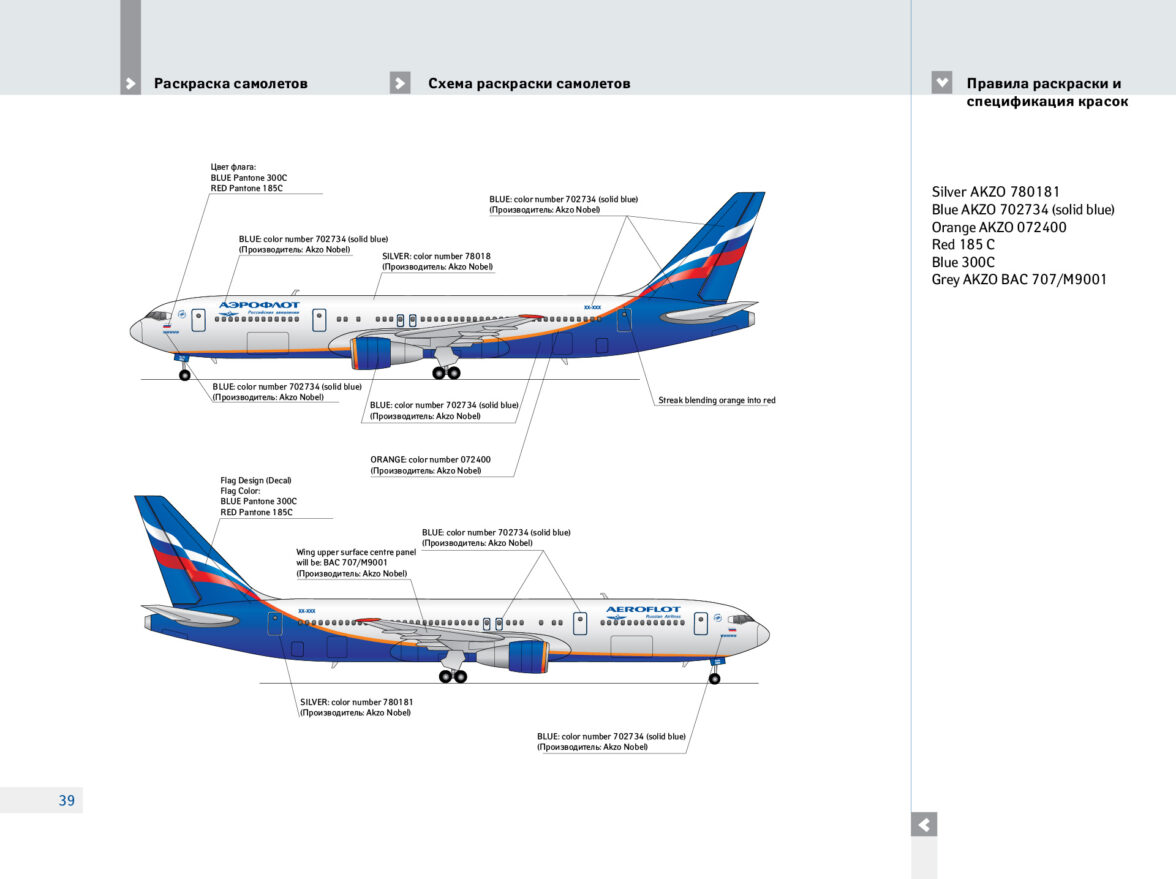 Брендбук компании «Аэрофлот» был разработана и оформлена в официальном документе — брендбуке в 2008 году. Это руководство состоит из пяти разделов, в которых подробно описаны ключевые особенности бренда. В брендбуке можно найти информацию о ценностях, миссии и сущности бренда, а также подробные инструкции по использованию логотипа, фирменного стиля, оформлению мест продаж и воздушных судов.