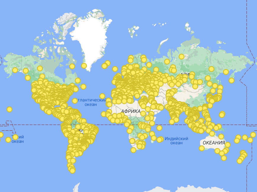 Сейчас мировая карта GGC выглядит так (данные Google):