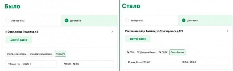 Клиенты получили больше вариантов: курьер, ПВЗ, Почта, Самовывоз.