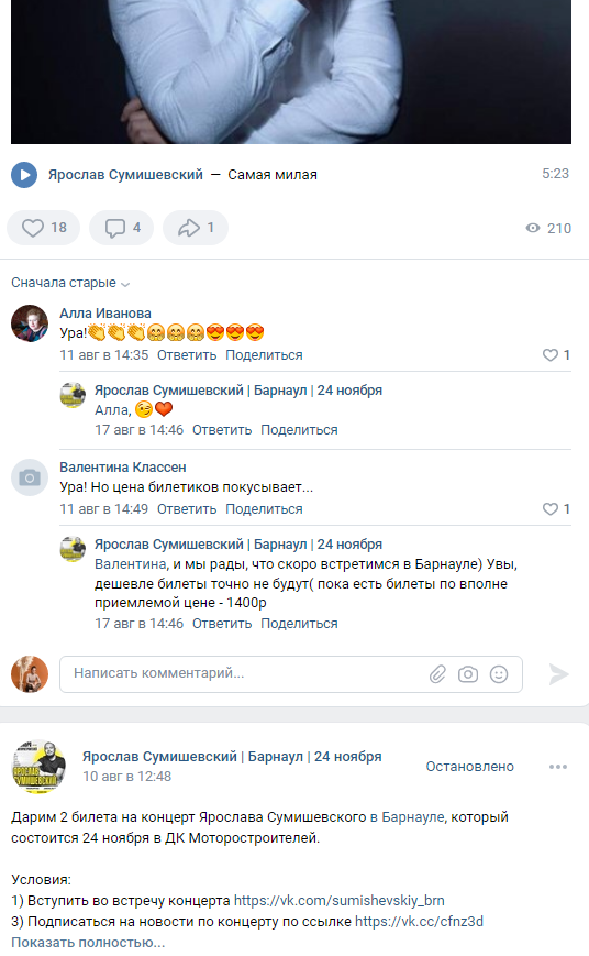 Давайте рассмотрим еще один кейс рекламы концерта для возрастной аудитории.