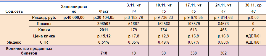 Выводы по кейсу. Солдаут на концерт Девятовой мы собрали за 14 дней до мероприятия. По эффекту для продаж рекламная кампания была похожа на мощный запуск рекламы по ТВ.
