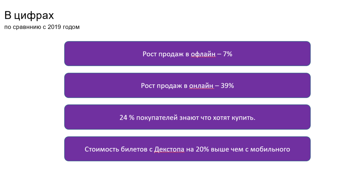 Давайте посмотрим на статистику одного из крупнейших продавцов билетов на Российском рынке
