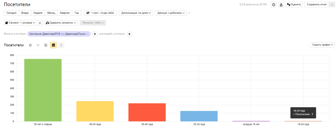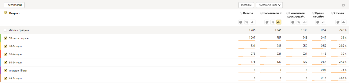 Смотрим разбивку по возрастам: