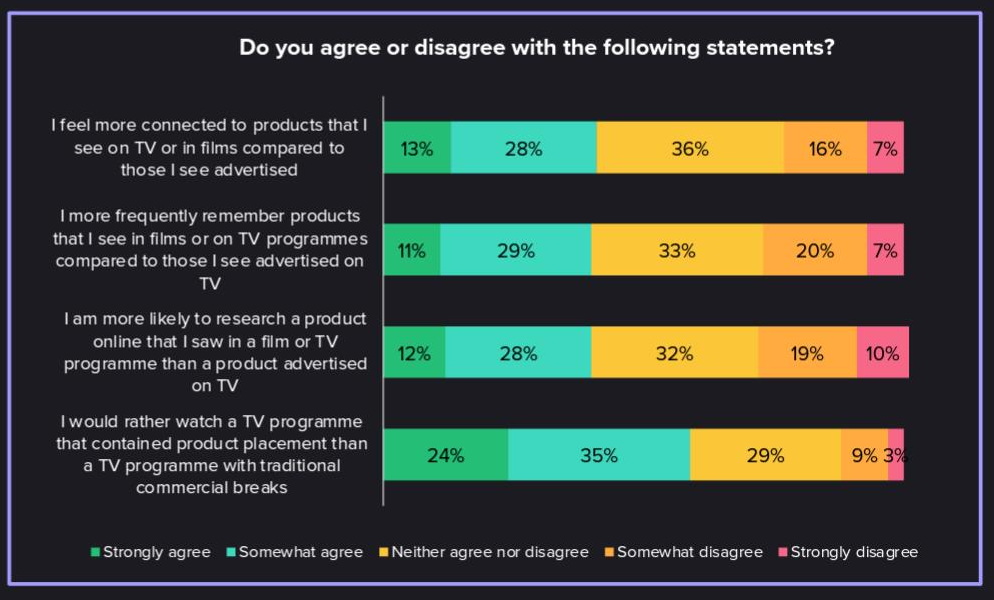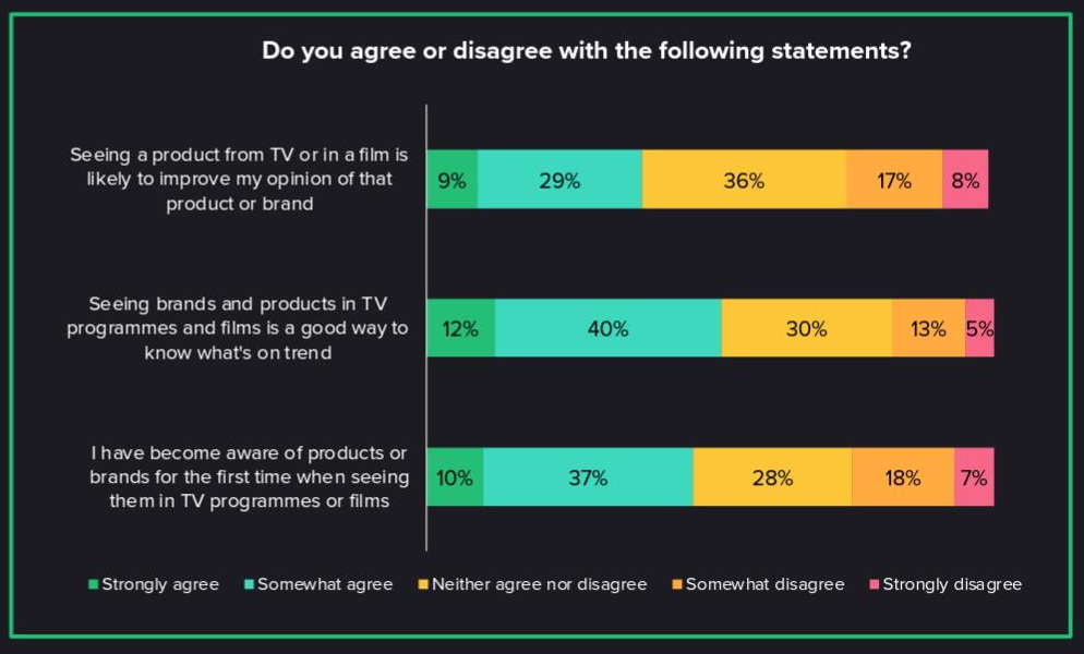 Рост популярности потоковых сервисов, где фильмы и шоу, демонстрируются зрителям без рекламных вставок, усложнили доступ брендов к потребителям. Чтобы понять поможет ли продактплейсмент в продвижении брендов, компания Билла Гейтса BENlabs, специализирующаяся на этой услуге, провела опрос среди британцев. Пятьсот жителей Соединенного королевства рассказали исследователям о том, как они смотрят телевизор и о своем отношении и восприятии продактплейсмента.