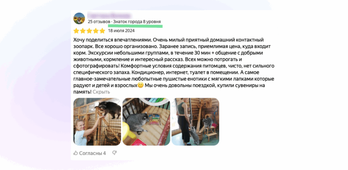 Это снижает строгость восприятия — человек мягче оценивает рейтинг компании и даже может не придавать большого значения отдельным не самым приятным отзывам.
