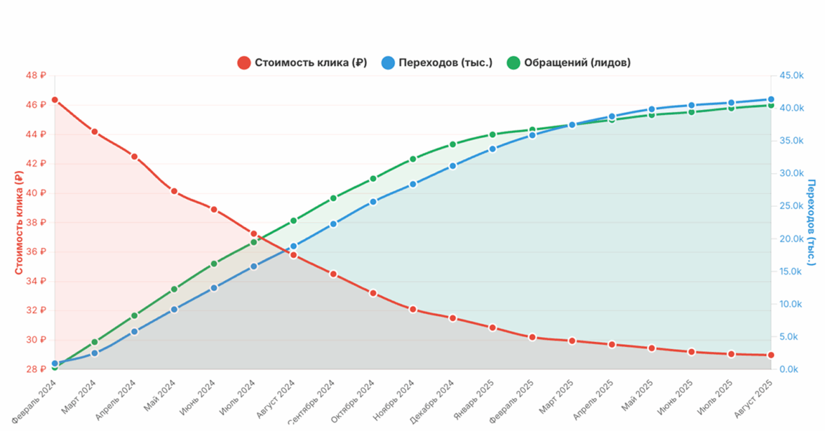 Ключевое достижение: Многократное увеличение объёма качественного трафика при снижении стоимости привлечения клиента