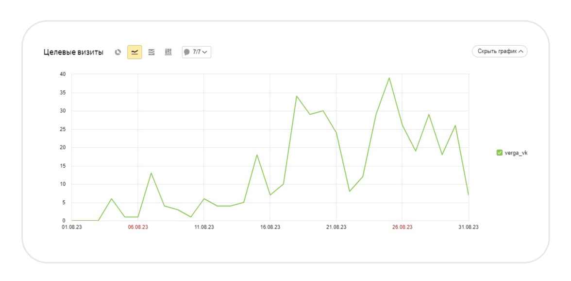 В начале второго месяца заказчик сумел настроить сквозную аналитику с гарантированная отслеживанием заказов, и мы смогли работать в полную силу. Теперь нам было проще отслеживать по какому объявлению к заказчику пришел клиент и какие рекламные связки работают эффективнее всего. На основании этих данных каждую неделю мы оцениваем ситуацию и вносим коррективы.