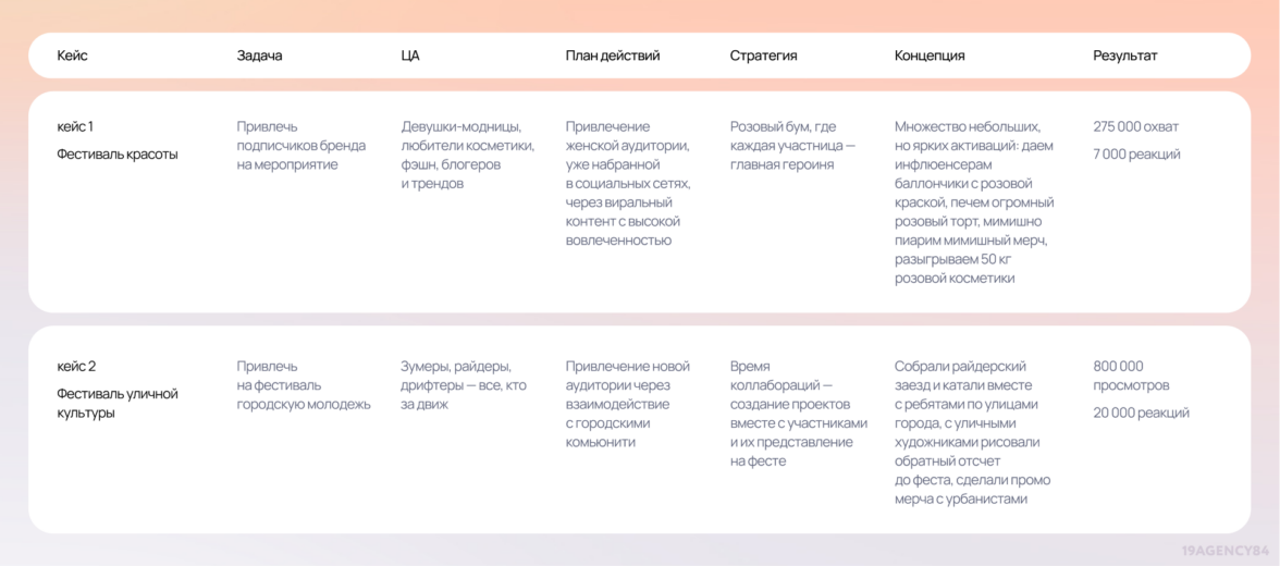 За стратегией продвижения, креативной концепцией и SMM-продакшеном приходите в 19agency84. На низком старте для крутых проектов.