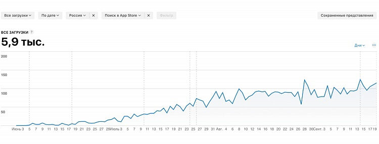 На скриншоте показан рост количества установок со старта наших работ в июле. Мы помогли команде выйти на рынок, не упустив ни одного инструмента, который положительно влияет на привлечение новых пользователей в App Store
