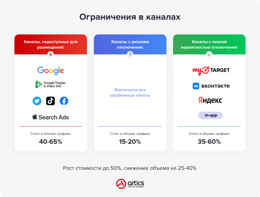 2. Спланировать альтернативное распределение трафика в случае дальнейшего отключения ряда каналов. По сути, это уже сделано из-за отключения крупных площадок, но есть риск, что отключения продолжатся.
