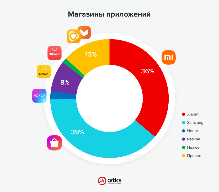 — альтернативные магазины приложений для Android — Samsung Galaxy Store, Huawei AppGallery, Xiaomi GetApps, Aptoide, GetJar, Realme, Honor.