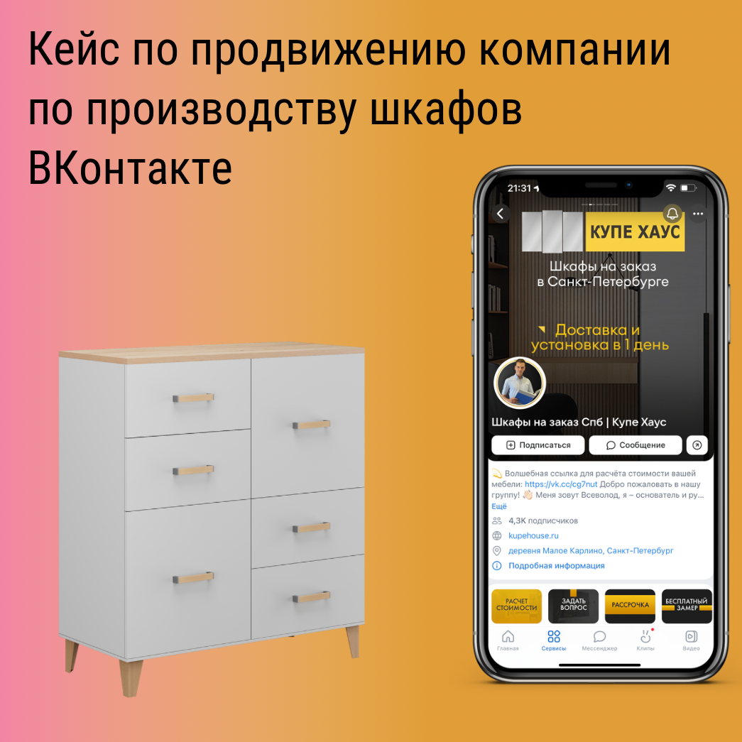Продвижение производства шкафов ВК: 1000 переходов по 53 рубля