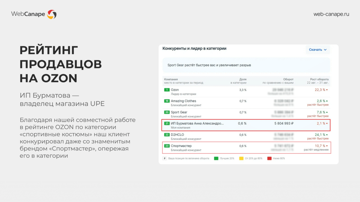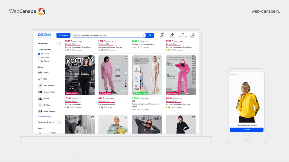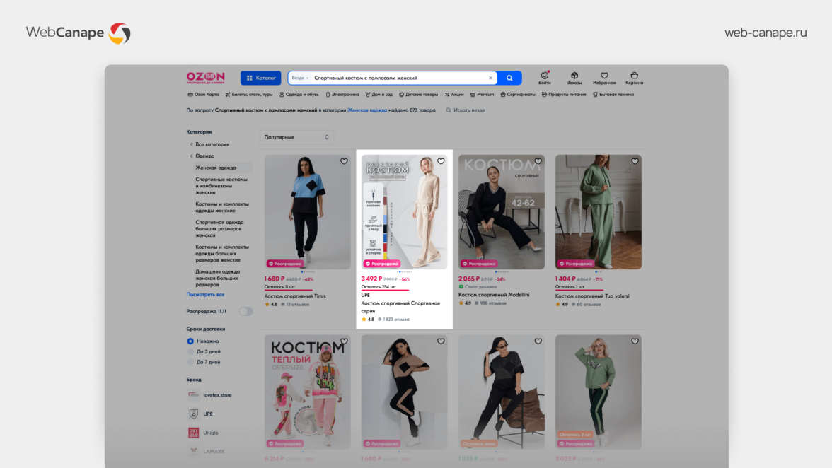 И, кстати, благодаря нашей совместной работе в рейтинге OZON по категории «спортивные костюмы» наш клиент конкурировал даже со знаменитым брендом «Спортмастер»: