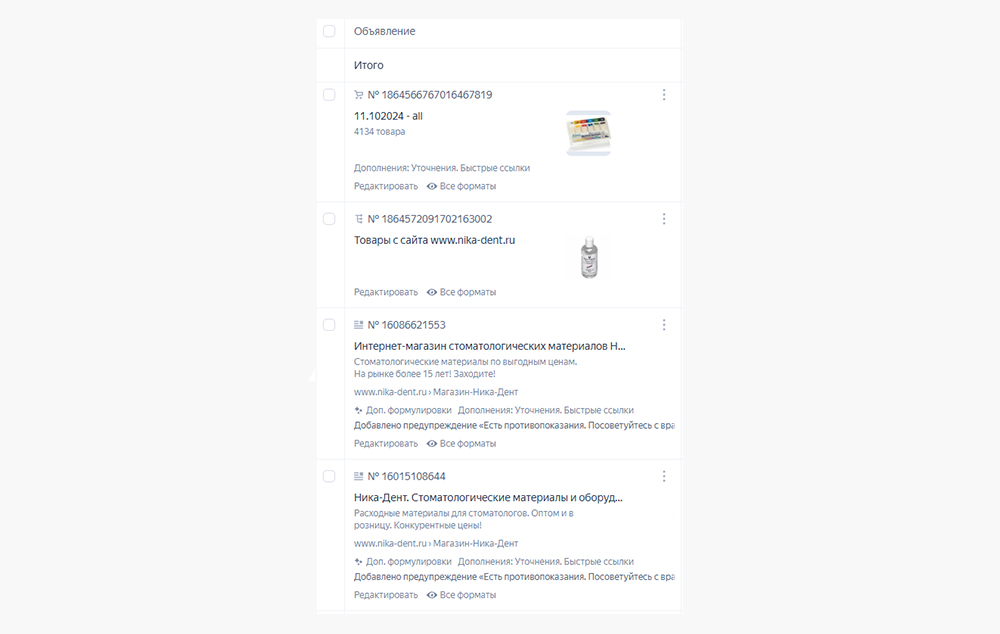 Также стоит отметить, что есть пласты основных запросов по типу стоматологические материалы и расходники, которые вообще охватывают всю тематику, но насколько это будет выгодно?