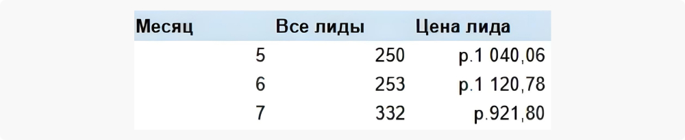 Сперва цель рекламных кампаний строилась из отчетов, которые собирались все предыдущие годы. И так получалось, что цена обращения была на уровне 700–1000 рублей, поэтому основной посыл с другой стороны был такой: «Хотим, чтобы было как раньше». Но мы явно понимали, что такой цены в B2B уже давным давно нет ввиду чудес аукциона Яндекса и естественной инфляции, и нужно ориентироваться на реалии рынка.
