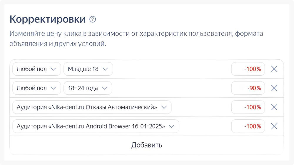 Но прежде чем начали перерабатывать аналитику, исходя из требований и задач заказчика, настроили рекламные кампании для тестирования наших первичных гипотез и понимания актуальной цены обращения, ведь конверсия сайта и цена клика никак не бились с данными от клиента.