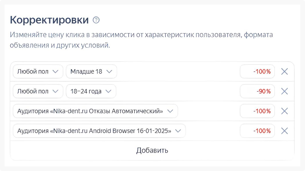Аудитория и корректировки