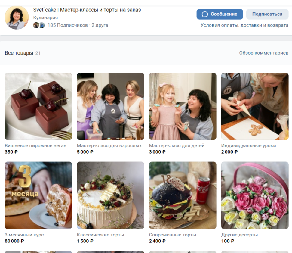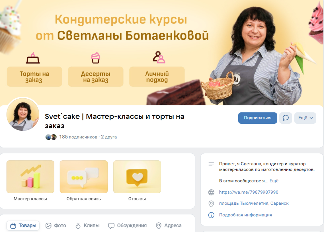 Описание клиента-кондитера, продающего торты, десерты и мастер-классы в ВКонтакте