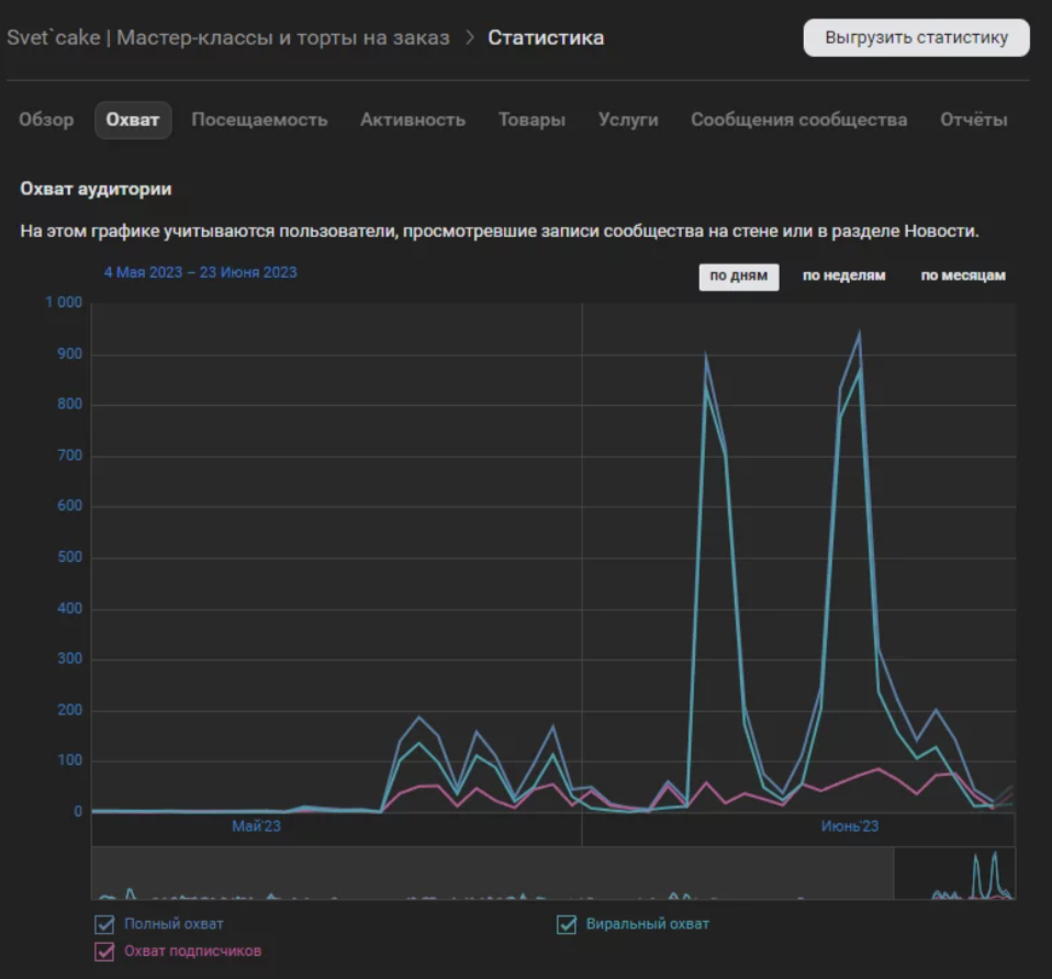 Больше активности: Также увеличились и основные показатели по просмотрам, активности, обсуждениям. Клиент отметил, что количество заказов по сравнению с прошлым месяцем увеличилось.