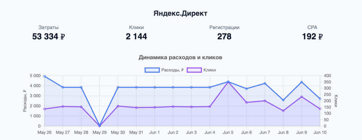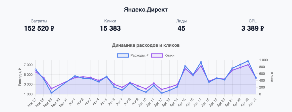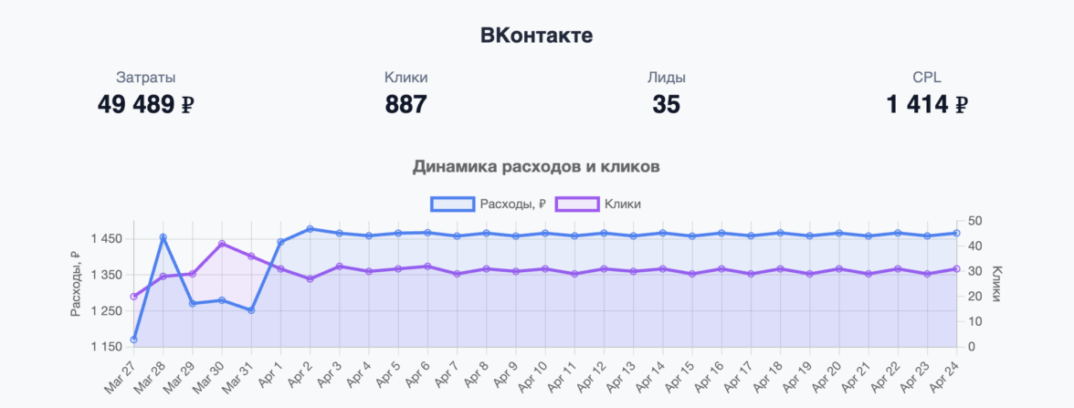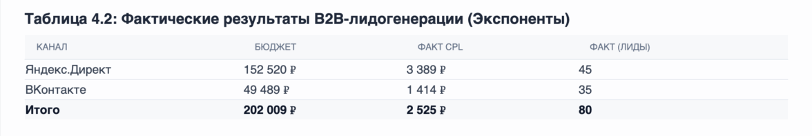 Гибкий подход позволил вовремя скорректировать бюджеты для стратегии на экспонентов. Поскольку лиды из Яндекс.Директ (через сайт и Marquiz) не конвертировались с ожидаемой эффективностью, мы оперативно перераспределили бюджет в пользу ВКонтакте, что оказалось решающим для успеха B2B-направления.