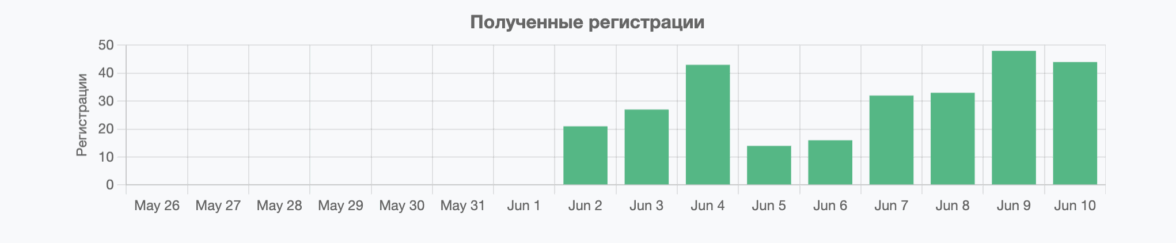 Анализ показал, что конверсия страницы для экспонентов на основном сайте в горячий период (апрель-май) составляла всего **0.05%**. Это критически низкий показатель для ведения платного трафика и основная причина высоких затрат на привлечение лидов в прошлом.