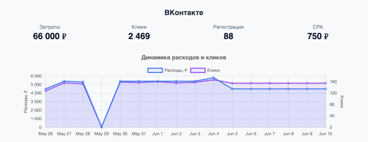 Для B2C-кампании связка ВКонтакте и Telegram показала наилучшие результаты по охвату и привлечению целевой аудитории.