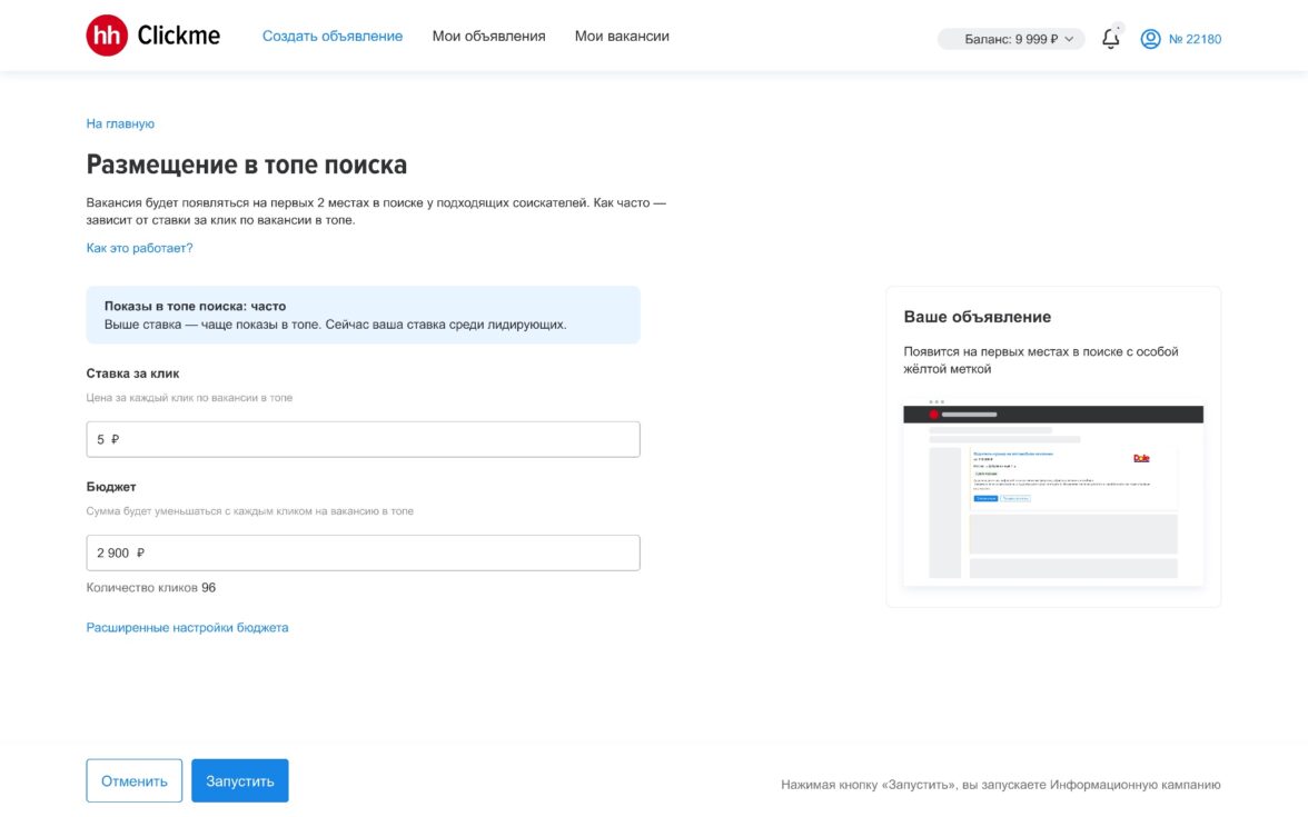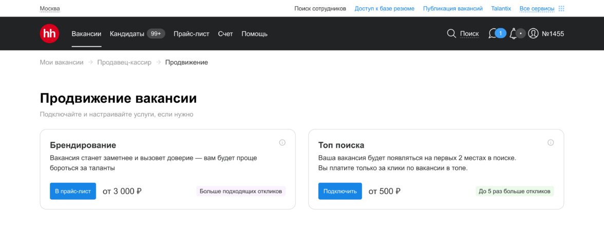 Как запустить продвижение в топ-2 поисковой выдачи hh.ru