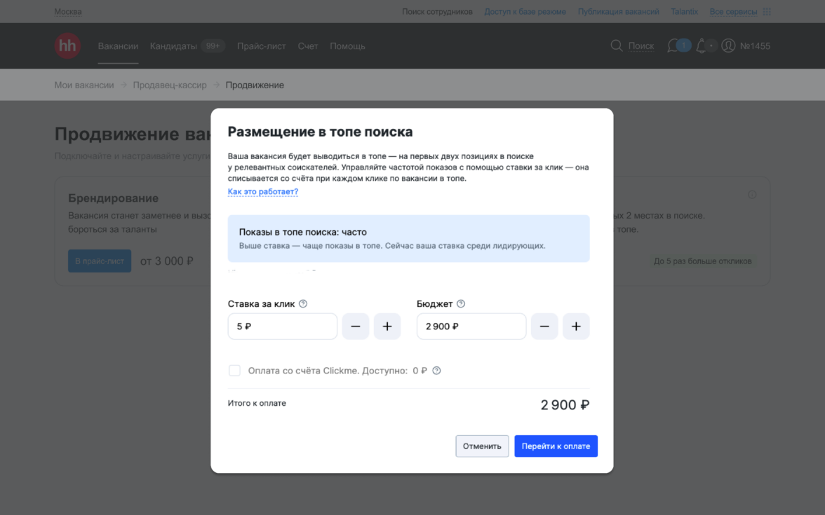 Продвижение вакансий в топе поисковой выдачи на hh.ru: новый инструмент Clickme для продуктивного найма