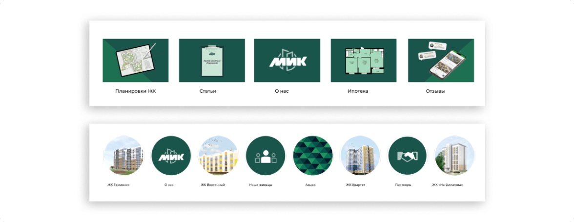 Для более удобного восприятия и поиска информации мы создали обложки для каждого блока «Меню», а также обложки для «Сюжетов».