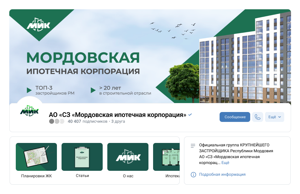 Соцсети застройщиков Республики Мордовия почти не ведутся.