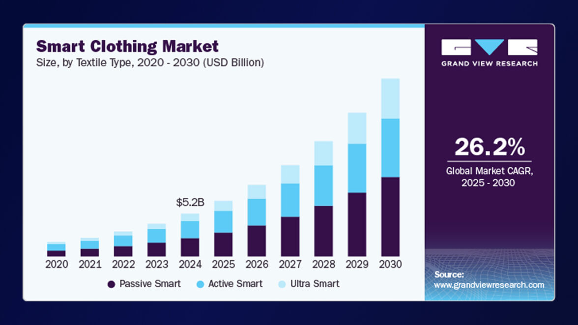 Гаджеты, отслеживающие здоровье и активность, становятся всё ближе к телу. Если ранее речь шла об умных часах, то теперь на сцену выходит умная одежда. По прогнозам, рынок таких устройств вырастет с $2,3 млрд в 2022 году до $23 млрд к 2032 году, что свидетельствует о растущем интересе к интеграции технологий в повседневную жизнь.