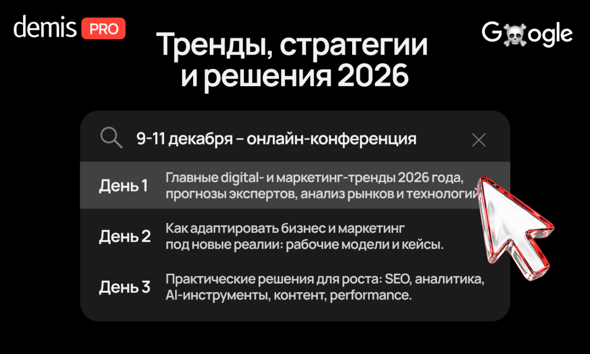 На Demis PRO вы узнаете, как встречать 2026 год во всеоружии: где искать точки роста, какие технологии станут must-have в маркетинге и какие решения уже приносят результат.