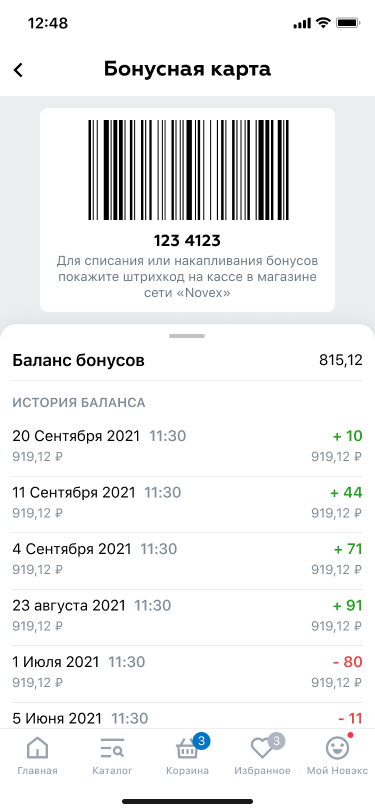 Воспользоваться бонусными баллами при покупке в офлайне тоже легко — достаточно показать кассиру штрих-код карты из приложения кассе. Раньше для этого нужно было диктовать номер бонусной карты вслух. Это долго, а карта может быть не с собой. А если у покупателя еще нет бонусной карты, то её можно быстро получить: нужно всего лишь зайти в приложение по номеру телефона, нажать пару кнопок в личном кабинете, и виртуальная карта будет готова.