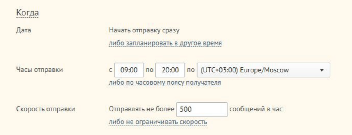 График отправки — составляем планомерный график отправки писем по базе. Например, у нас 1 000 контактов, и нам нужно понять, за сколько дней мы отправим письма, учитывая, что в первую отправку можно отправить не более 50–100 контактам.