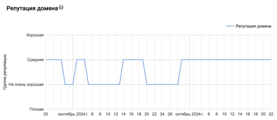 На репутацию домена в первую очередь влияет отправка на «плохие» почтовые адреса (почта не существует или переполнена) — это говорит о том, что не соблюдается гигиена базы. Также влияет нажатие на «Спам» и низкая активность базы.