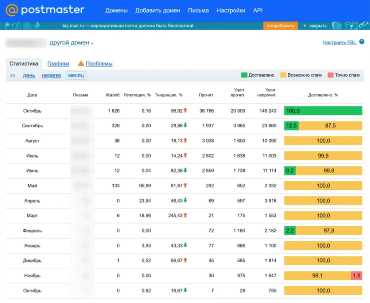 В процессе анализа результатов email-кампаний применяются инструменты под названием Postmasters (постмастера). Эти средства аналитики позволяют определить репутацию домена, обнаружить проблемы с доставкой сообщений и на основе этих данных внести необходимые корректировки в процесс отправки рассылки.