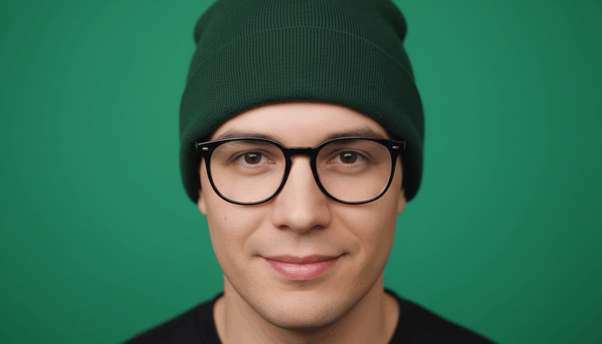 [ФОТО]. Аватар для Telegram. Крупный план лица, плотное кадрирование ото лба до подбородка. Взгляд прямо, уверенное дружелюбное выражение. Фон яркий однотонный: терракотовый, синий или изумрудный. Четкое светлое освещение, сильный контраст с фоном. Минимум деталей. Формат 1:1. Не добавлять: мелкие детали, текст, руки, сложный фон, полную фигуру.
