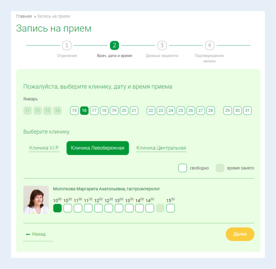 • клиники — запись на приём, хранение и просмотр истории болезни, истории посещения врачей, результатов анализов;