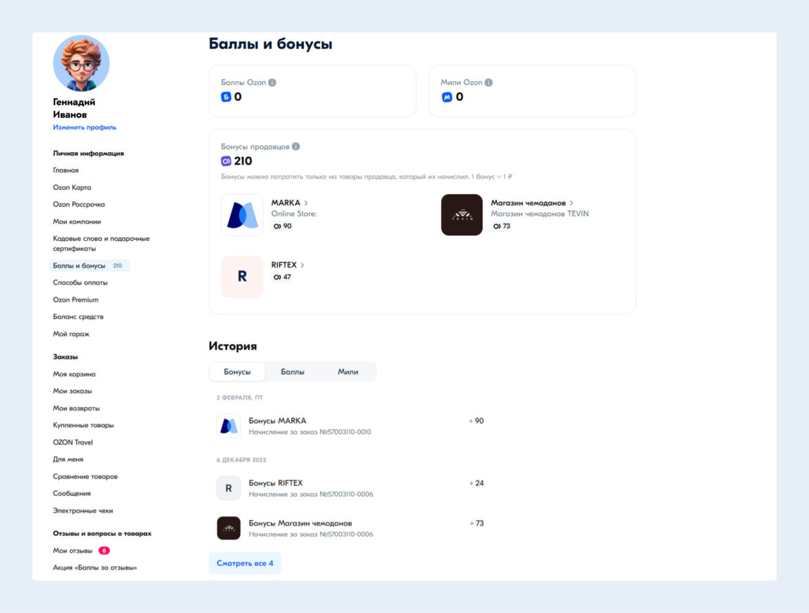 • магазины, маркетплейсы — продажа и покупка любых товаров и услуг, история покупок;