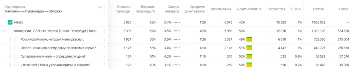 Результаты, какие заголовки показали наилучшие результаты по показам, охватам, кликабельности и дочитываниям