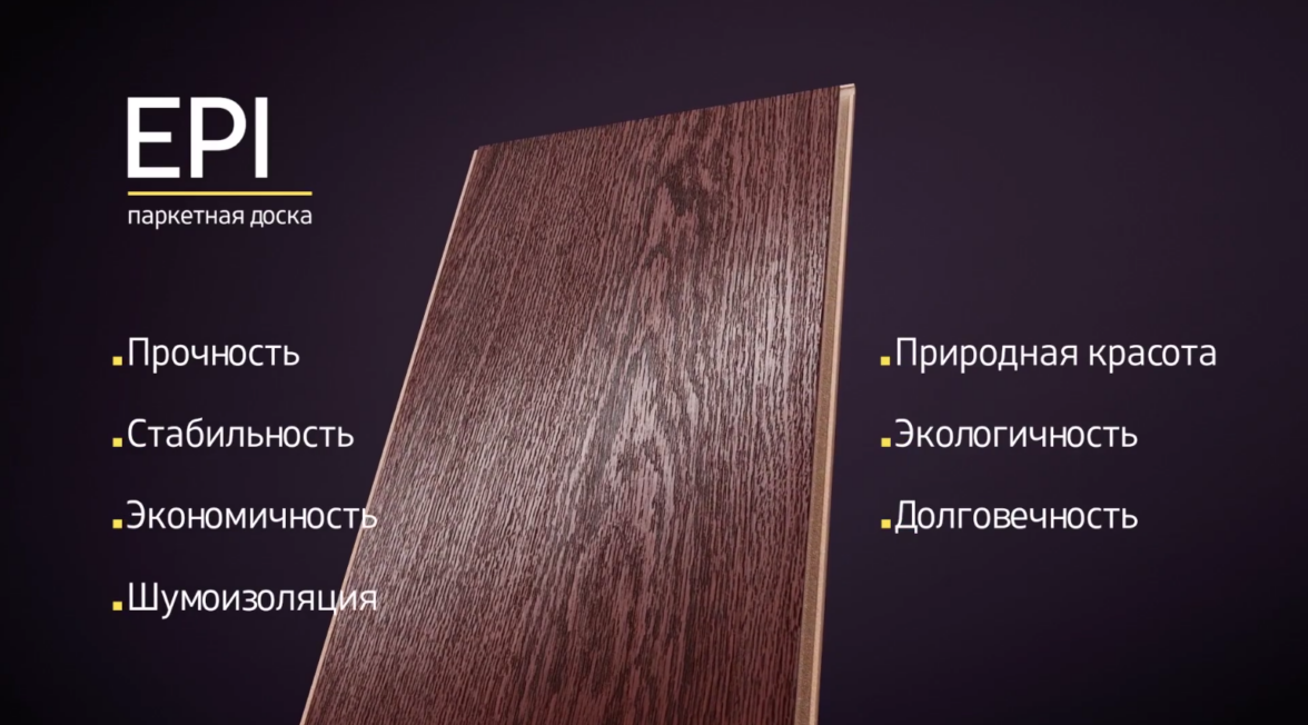 Несколько лет назад к нам обратился производитель с просьбой создать рекламный ролик для паркетной доски EPI. Наша команда тщательно проработала проект, выяснив, что продукция клиента обладает выдающимся качеством — она сочетала в себе лучшие качества паркета и ламината: привлекательность и прочность.