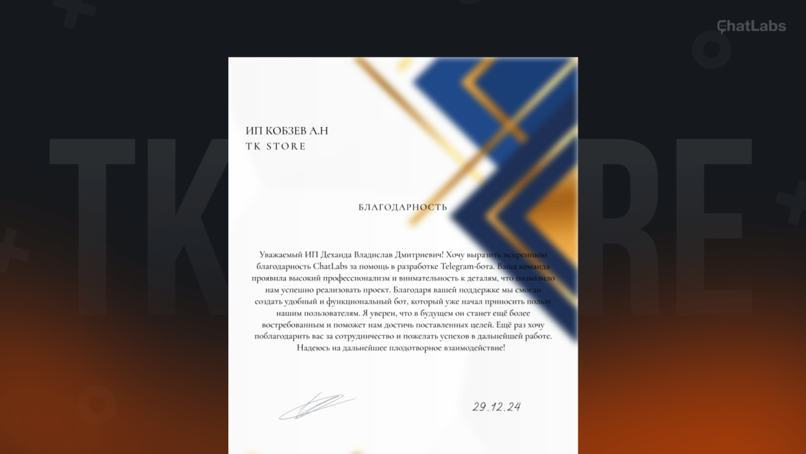 Благодарность клиента