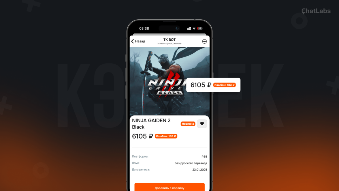 Каждый товар имеет свою уникальную карточку, кликнув на которую, пользователь переносится на отдельную страницу игры (опять же, всё в рамках приложения и самого Telegram). Там можно увидеть информацию о стоимости, описание, наличии разных изданий и аддонов, а также добавить товар в ‘Избранное’. При этом, если, например, на добавленный в ‘Избранное’ товар появиться скидка или особое предложение, пользователь получит уведомление в мессенджере.