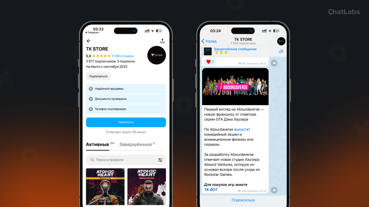 Одна из таких компаний обратилась к нам с запросом по разработке продукта. На момент обращения к нам компания уже активно занималась перепродажей продуктов PlayStation через Telegram канал и Avito. Прозрачная политика покупки и реклама делали своё дело — аудитория росла, заказов становилось всё больше, пришлось нанимать дополнительных менеджеров для мониторинга и обработки покупок.