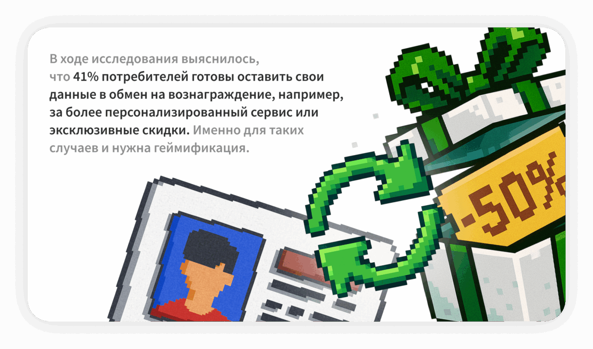 Геймификация может привлечь внимание клиентов, подтолкнуть их к участию в игре и вспоминать о бренде в первую очередь. Мотивируя целевых клиентов расставаться со своими данными, вы можете использовать эти данные для создания персонализированного сервиса и улучшенных маркетинговых стратегий, способствующих росту продаж и повышающих лояльности клиентов.