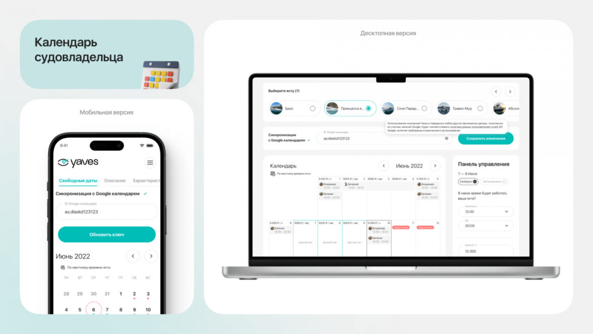 Как он работает: у судовладельца есть календарь. Он может зайти в свой личный кабинет на Yaves и посмотреть, какие даты забронированы. А может и не заходить, потому что все забронированные даты дублируются в его гугловский календарь — для многих это удобнее.