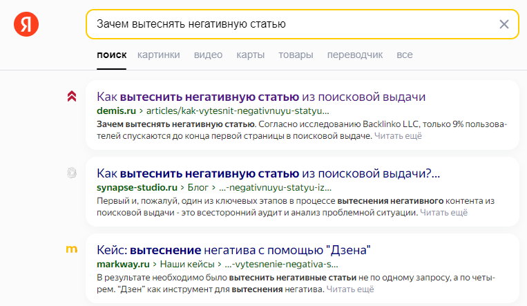 Работа с репутацией: как вытеснить негативные статьи из поисковой выдачи