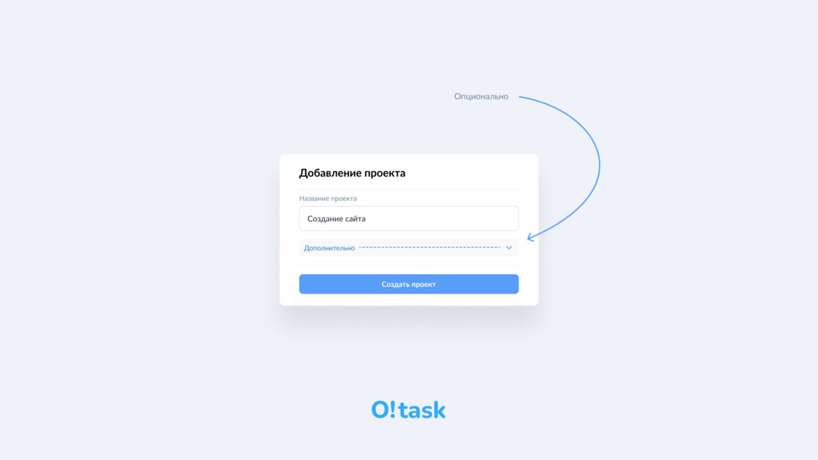Чтобы не «пугать» вас огромным количеством полей при добавлении проекта, теперь, при добавлении проекта, показываем по умолчанию только поле Название, остальное спрятали в кнопку «Дополнительно».