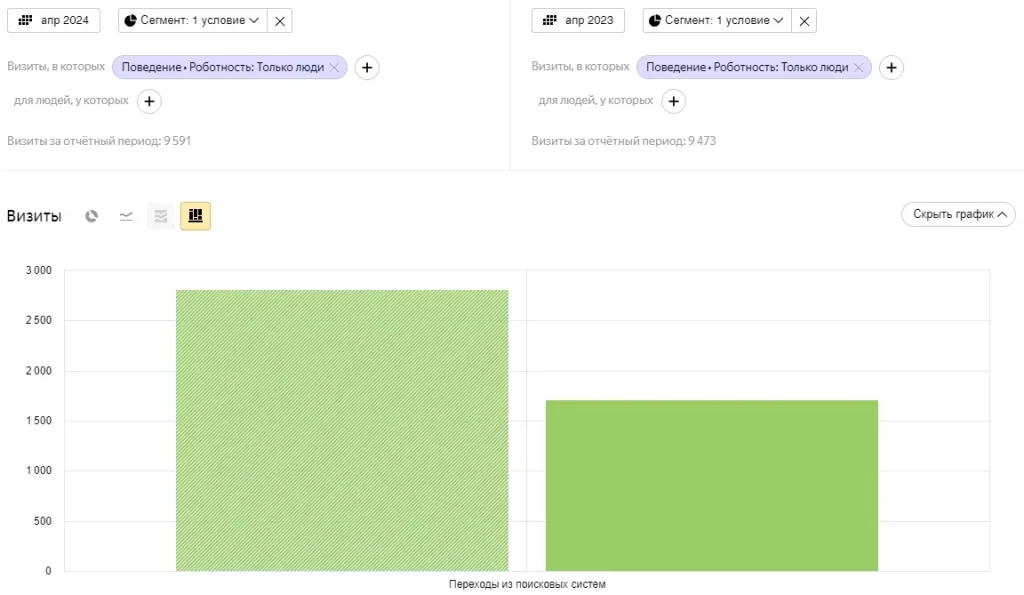 Сравнение объема трафика из поиска за апрель 2024 с апрелем 2023